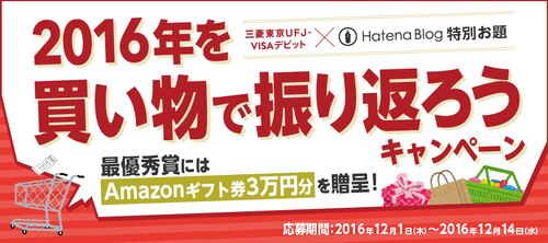 「買い物」で、この1年を振り返ってみませんか? 買い物に便利な三菱東京UFJ-VISAデビットと共同で特別お題キャンペーンを実施します。