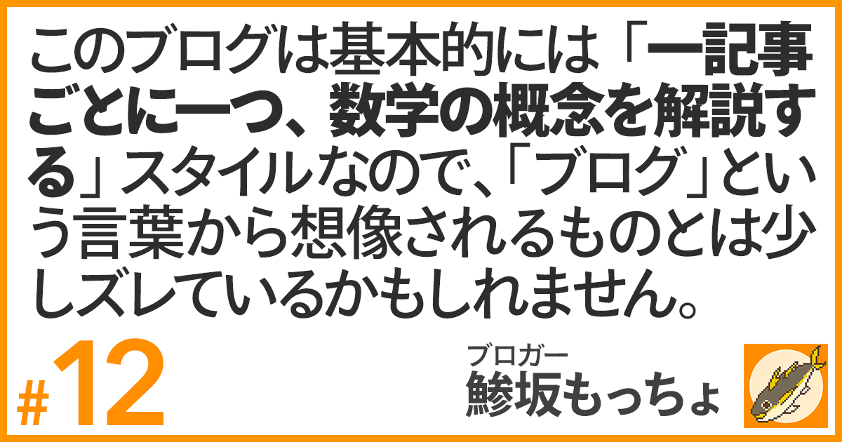 「ブログを書くことについて」と言っても、このブログは基本的には「一記事ごとに一つ、数学の概念を解説する」スタイルなので、「ブログ」という言葉から想像されるものとは少しズレているかもしれません。