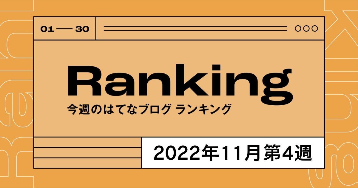 はてなブログ独自の集計による人気記事のランキング。11月20日(日)から11月26日(土)〔2022年11月第4週〕のトップ30です*1。